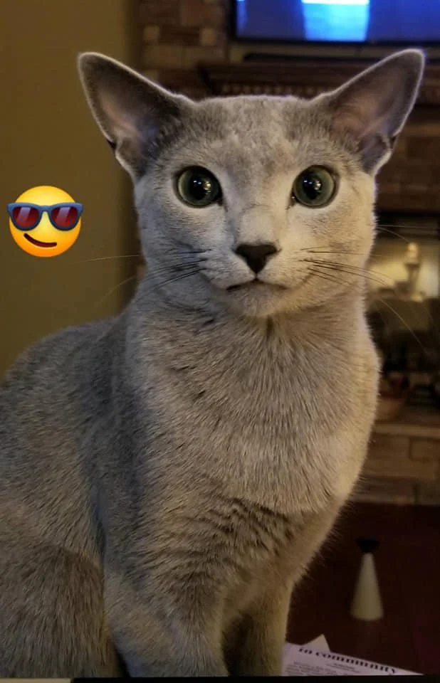 Harry was the pick kitten of 2 litters of ALL boys (10 of them!). He is a stunningly handsome Russian Blue with large green eyes and a silvery coat. He was only shown once as a kitten because he was born during the pandemic and there were very few cat shows then. Harry is neutered (4-5 years ago), has a microchip, and has had a health check-up and all vaccinations updated recently.