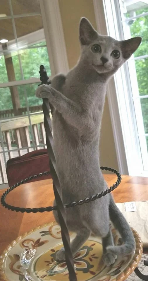 Newt is a CFA Regional Winner, Grand Champion, and CFA’s BEST Russian Blue Kitten, 2018 - 2019 show season.